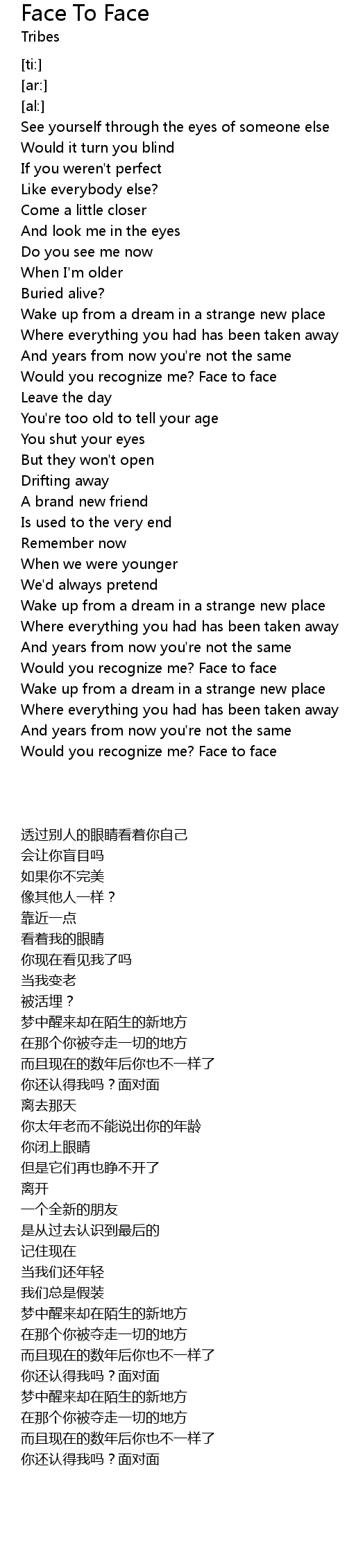 Would you recognize me? Face to face |