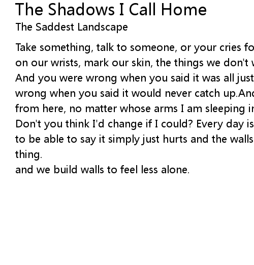 Don't you think I'd change if I could? Every day is a new sinking feeling.I want to be able to say it simply just hurts and the walls close in and I can't feel a thing. |