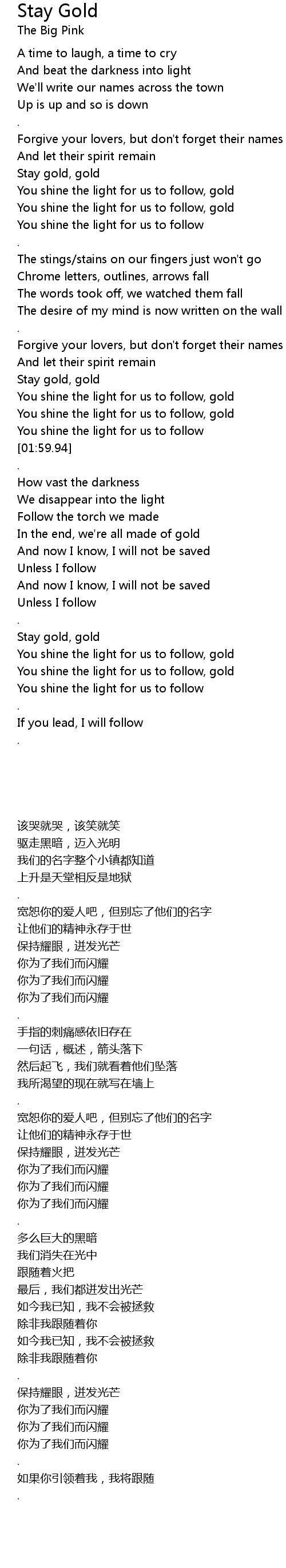 You shine the light for us to follow, gold |