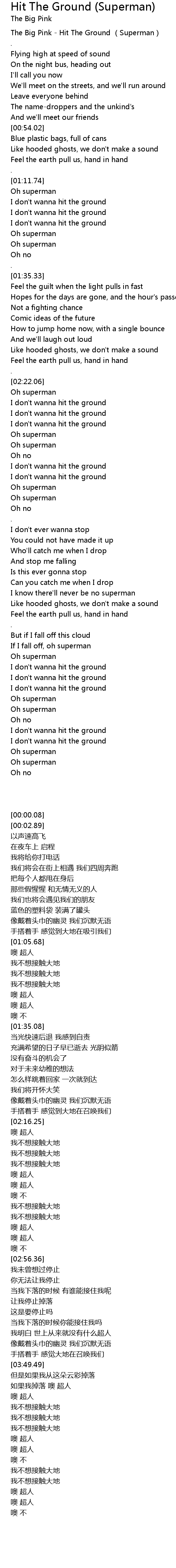 | [00:00.08] | The Big Pink Hit The Ground Superman |