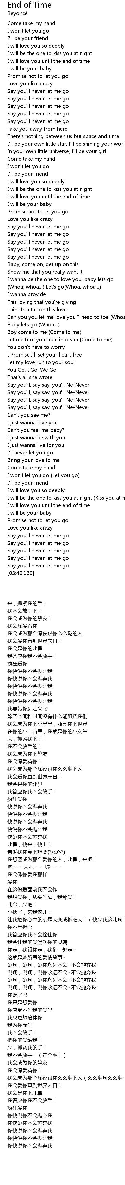 | [03:33.950] | Say you' ll never let me go |