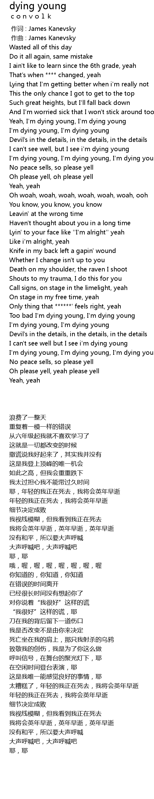 | [00:54.24] | I' m dying young, I' m dying young, I' m dying young |
