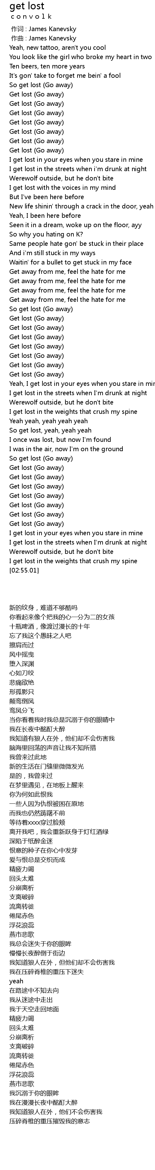 | [02:45.08] | I get lost in the streets when I' m drunk at night |