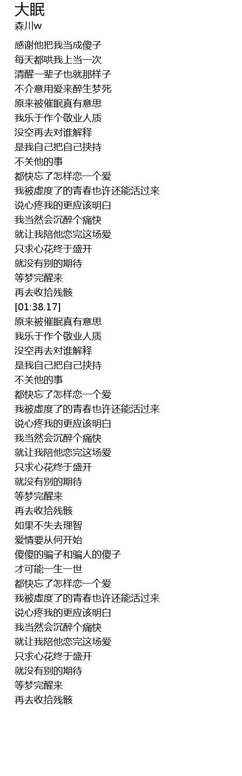 | [00:35.92] | bù jiè yì yòng ài lái zuì shēng mèng sǐ |