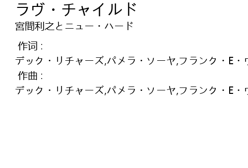 | [00:00.00-1] | 作词 : デック・リチャーズ,パメラ・ソーヤ,フランク・E・ウィルソン,リチャード・ディーン・テイラー |