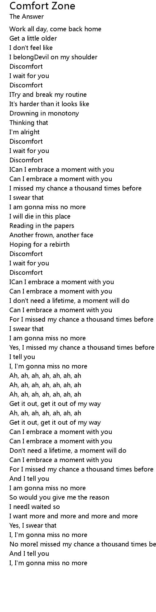 Comfort Zone 歌词