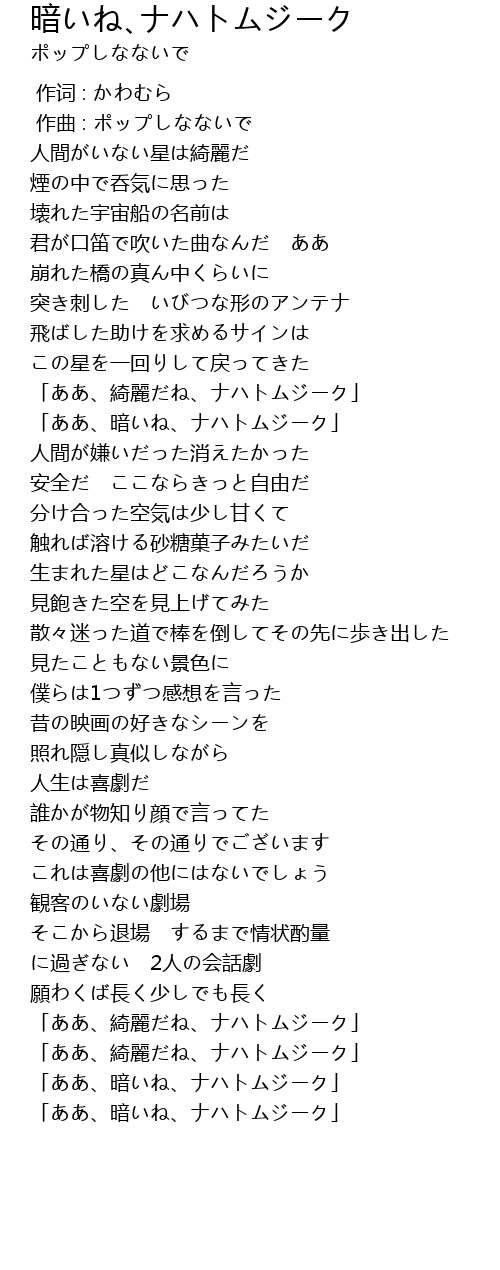 | [00:30.46] | 人間がいない星は綺麗だ |