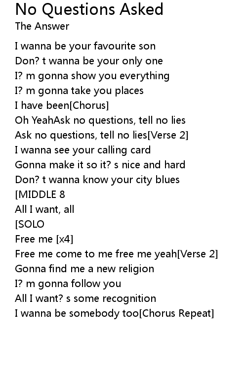 Oh YeahAsk no questions, tell no lies |