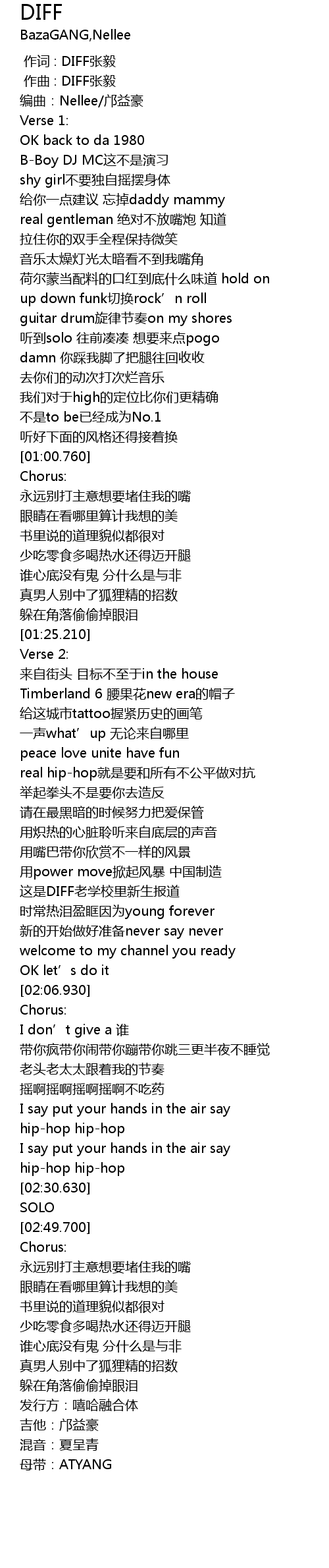 | [00:00.000] | zuò cí : DIFF zhāng yì |