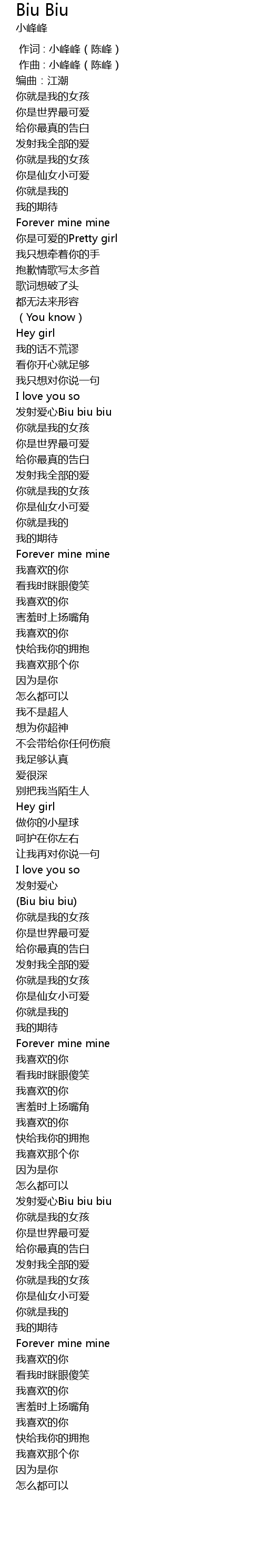 | [00:00.00] | 作词 : 小峰峰(陈峰) |