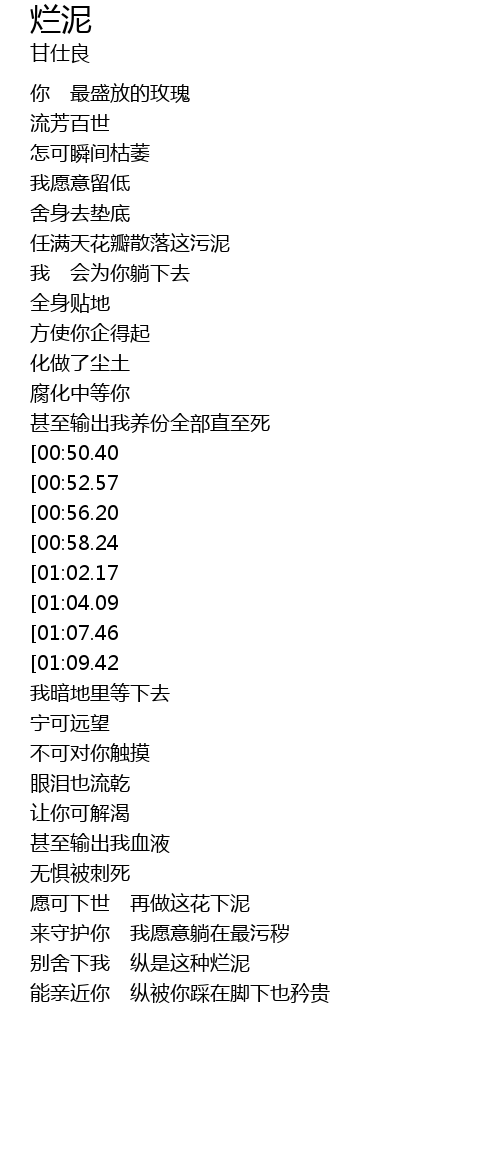 | [02:01.07][00:52.57] | 脚下那堆烂泥 |