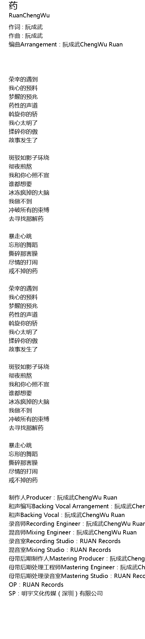 | 歌曲 | 药 |