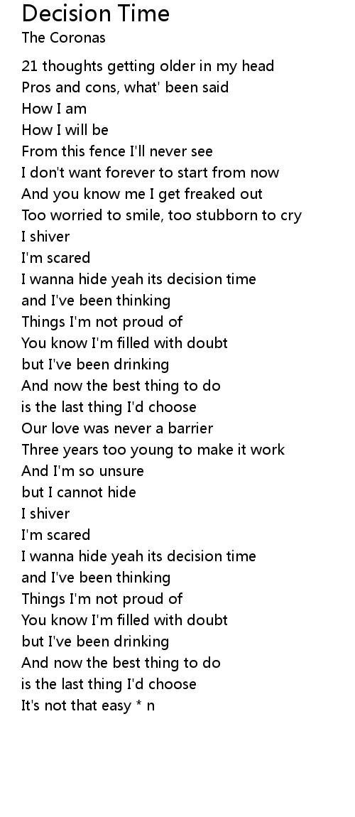 I wanna hide yeah its decision time |