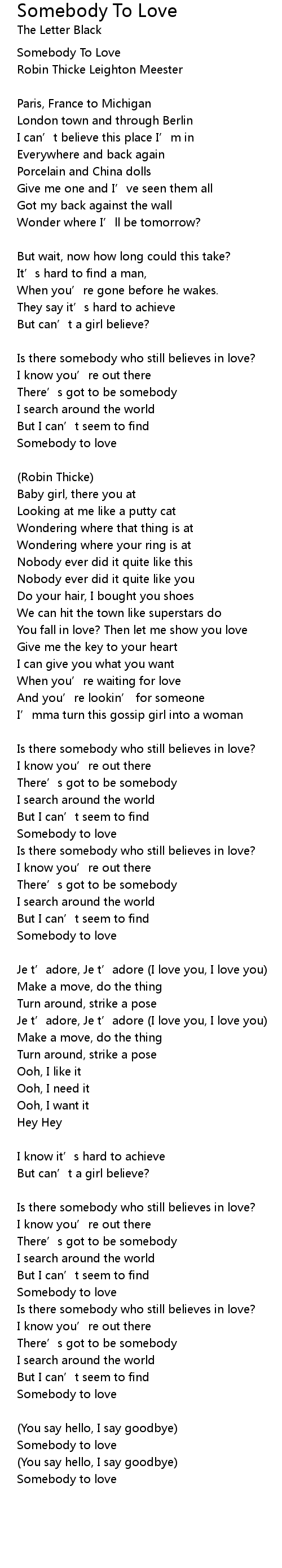 | Somebody to love |