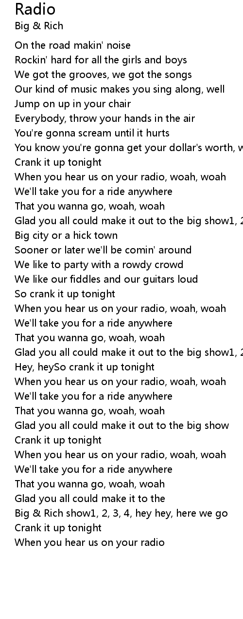 Big & Rich show1, 2, 3, 4, hey hey, here we go |