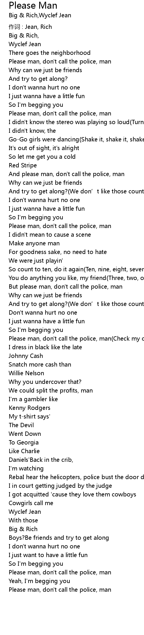 | But please man, don' t call the police, man | |