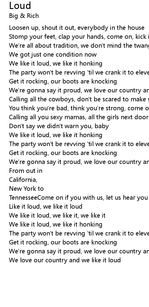 We're gonna say it proud, we love our country and we like it loud |