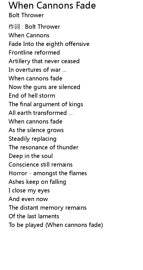 | 歌曲 | When Cannons Fade |