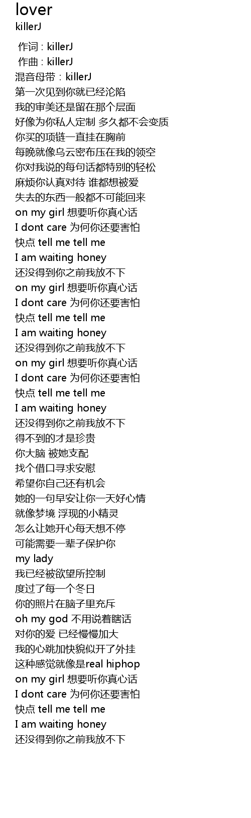 | [00:00.000] | 作词 : killerJ |