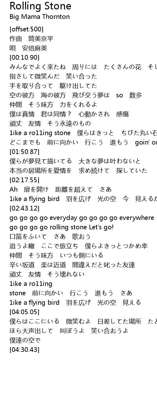 | [03:06.13] | go go go go rolling stone Let's go! |