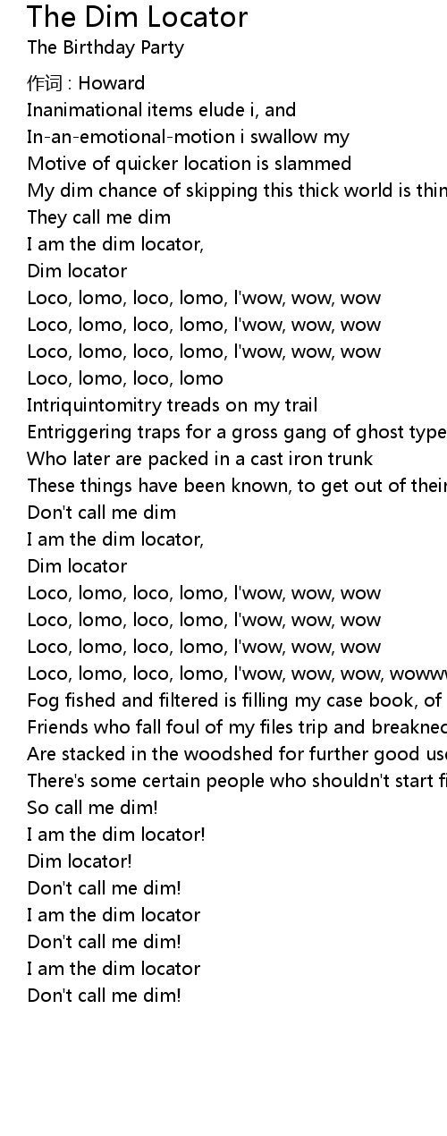 | Loco, lomo, loco, lomo, l' wow, wow, wow | |