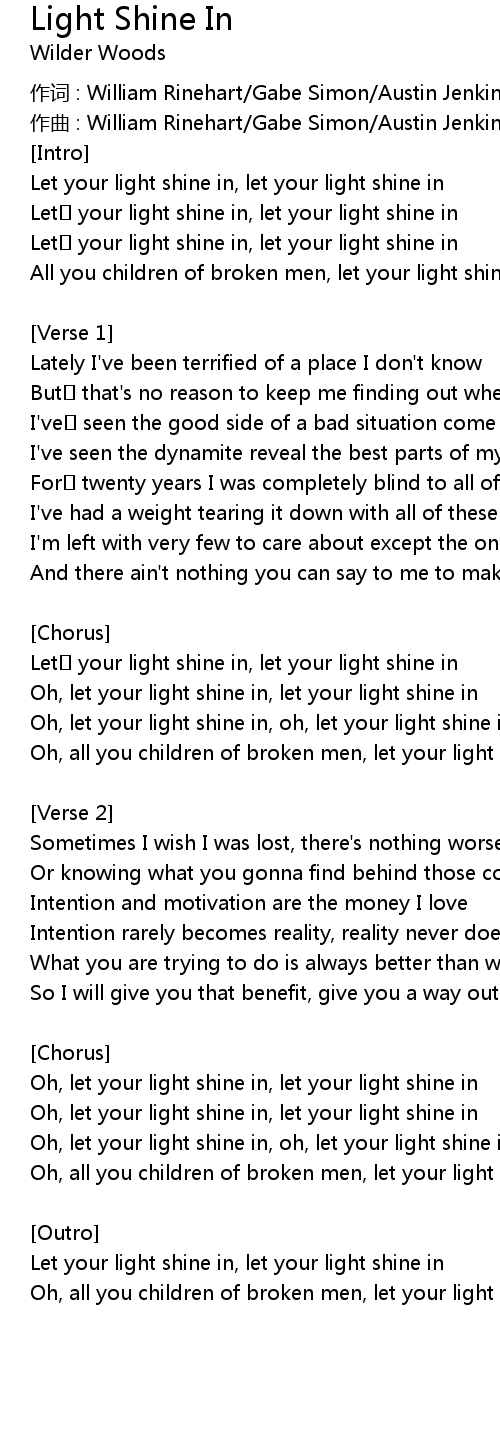 | Oh, all you children of broken men, let your light shine in |
