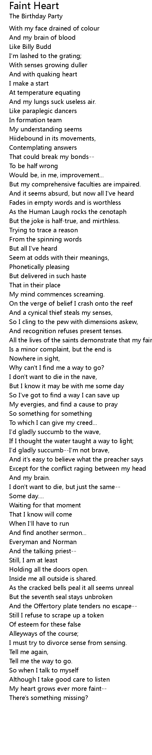 I'd gladly succumb--I'm not brave, |