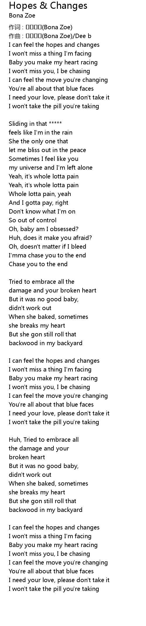 | I can feel the hopes and changes | |