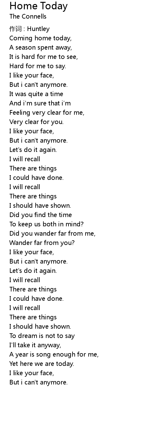 | Coming home today, | |