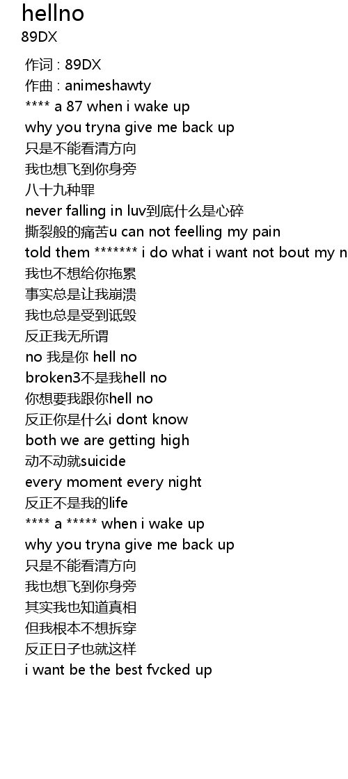 | [01:06.212] | nǐ xiǎng yào wǒ gēn nǐ hell no |