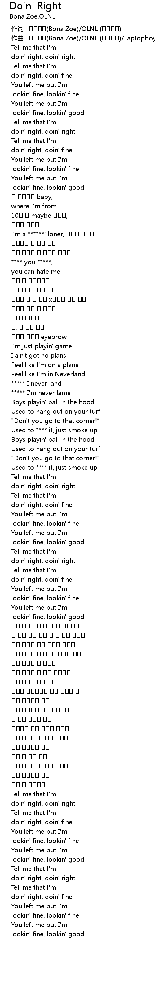 | [00:12.392] | doin' right, doin' right |