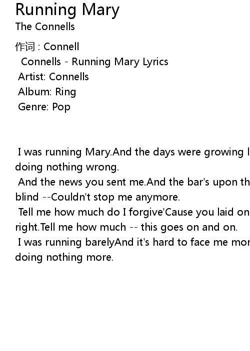 | Connells - Running Mary Lyrics | |