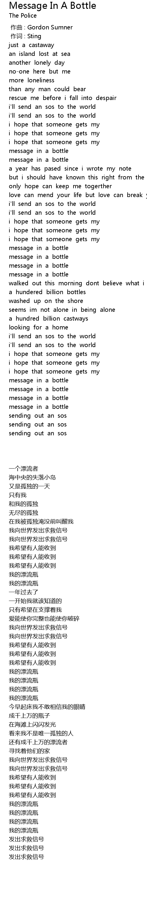 | 歌曲 | Message In A Bottle |