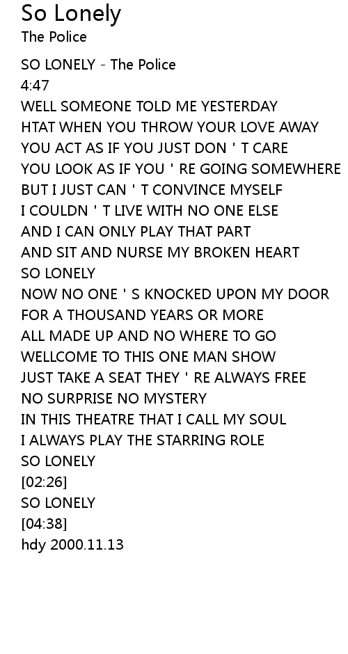 | 歌曲 | So Lonely |