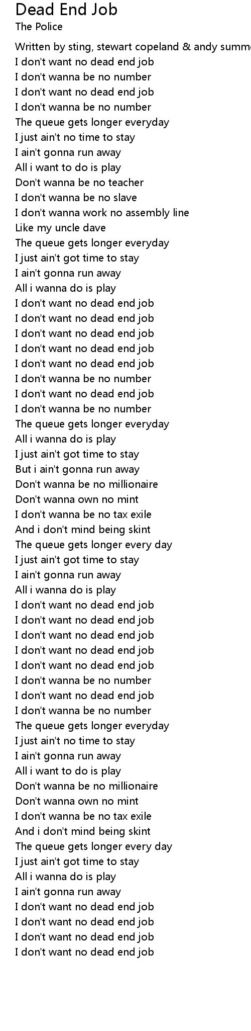 I don't want no dead end job |