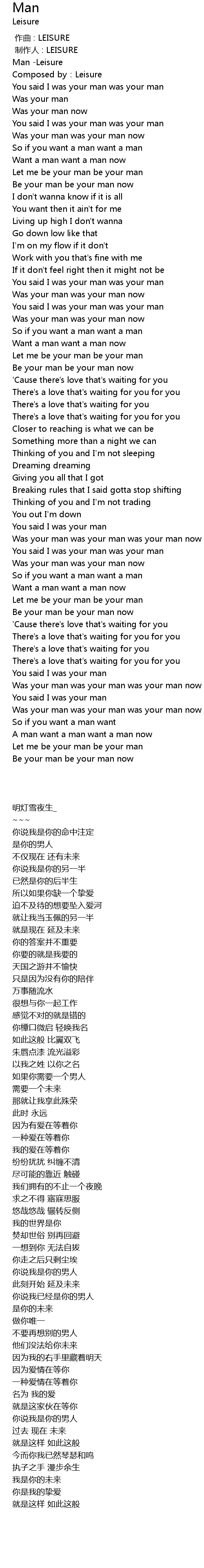 | [00:00.209] | Man -Leisure |