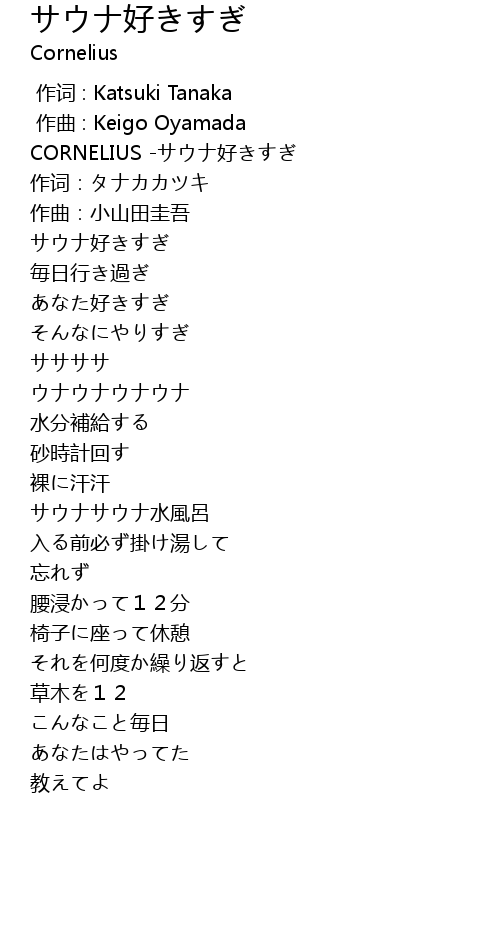 | [00:00.135] | CORNELIUS -サウナ好きすぎ |