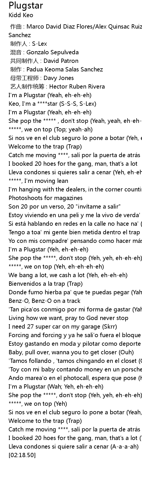 | [00:00.92] | I'm a Plugstar (Yeah, eh-eh-eh) |