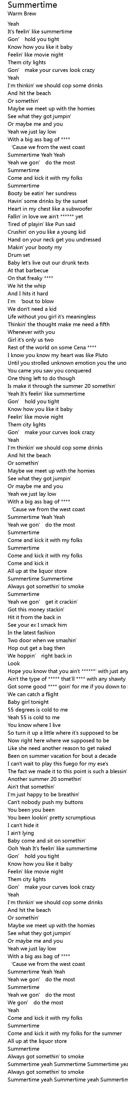 | [04:13.83] | Summertime yeah Summertime yeah Summertime Summertime |