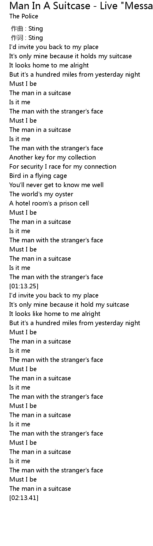 | [01:43.69] | The man in a suitcase |
