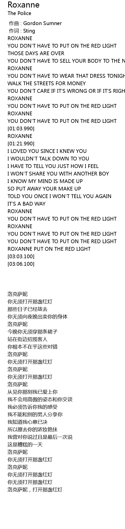 | [02:16.100] | ROXANNE PUT ON THE RED LIGHT |