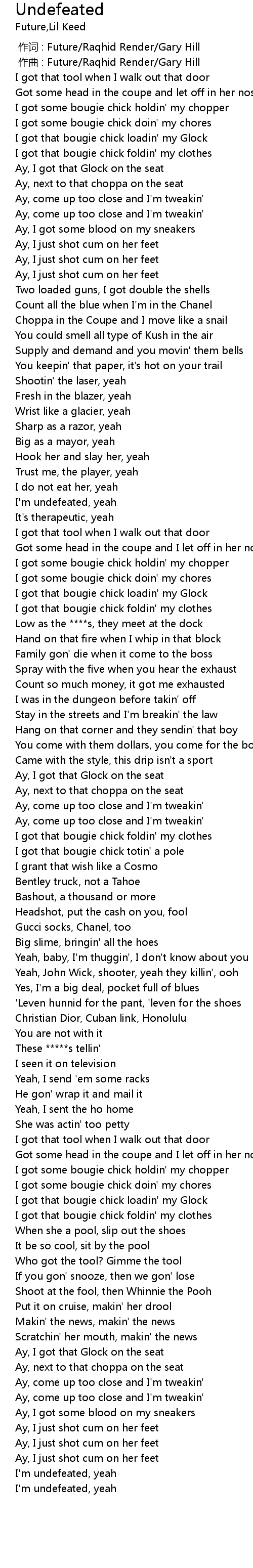 | [02:29.58] | I'm undefeated, yeah |