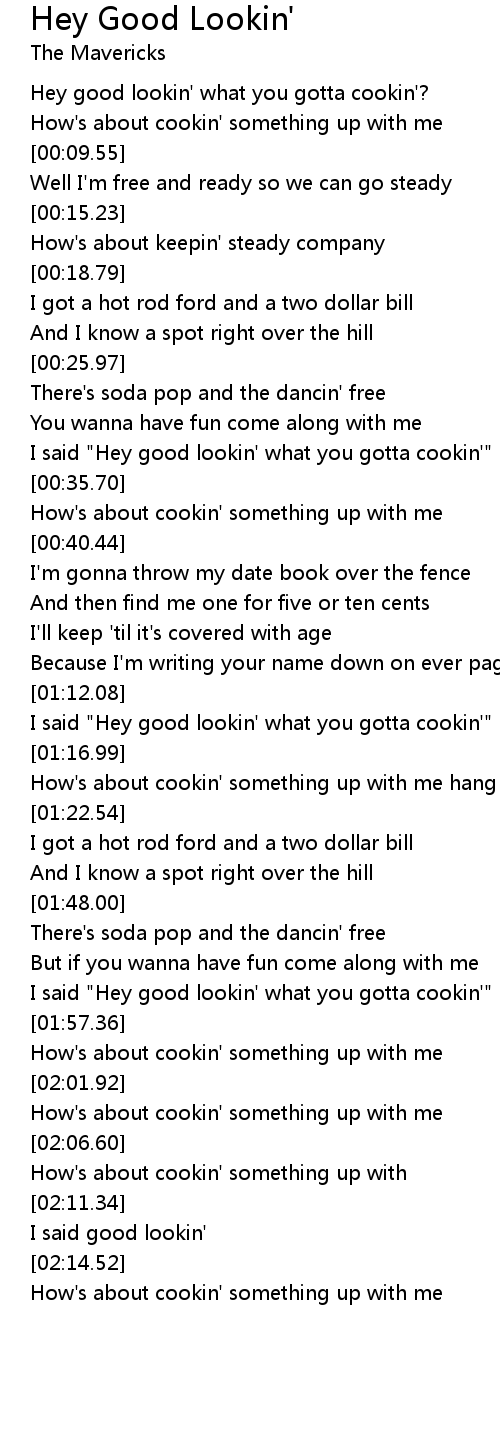 I said "Hey good lookin' what you gotta cookin'" |