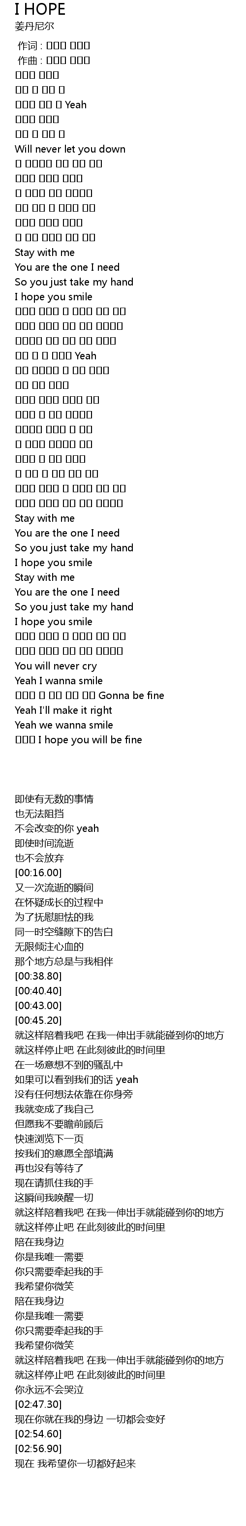 | [00:45.20] | I hope you smile |