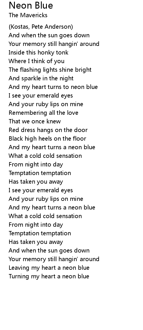And my heart turns to neon blue |