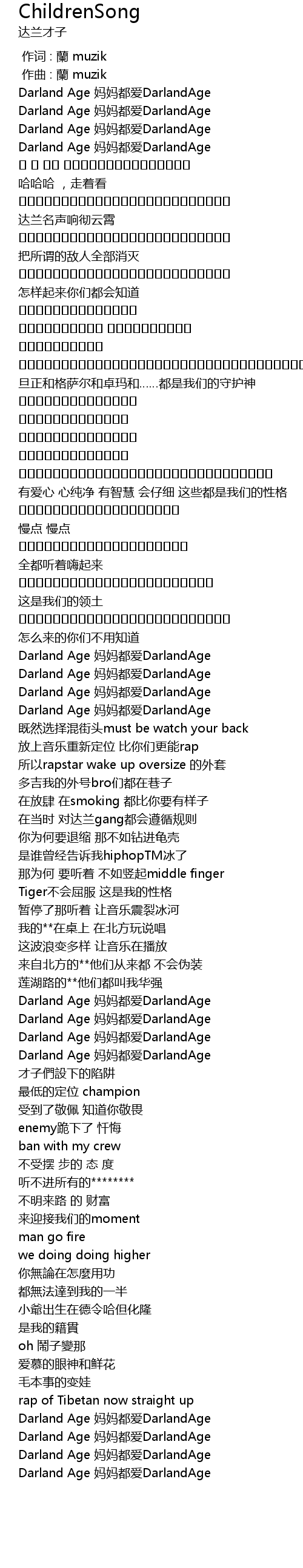 | [02:23.478] | Darland Age mā mā dōu ài DarlandAge |