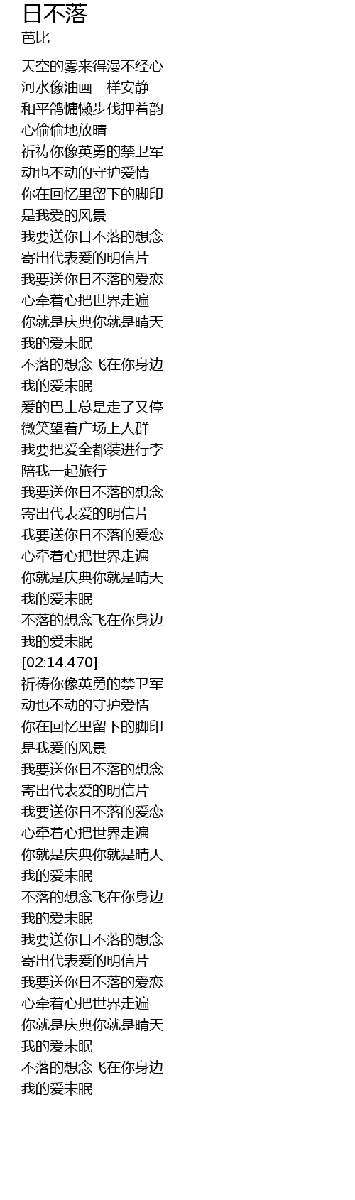 | [03:23.720] | 我要送你日不落的爱恋 |
