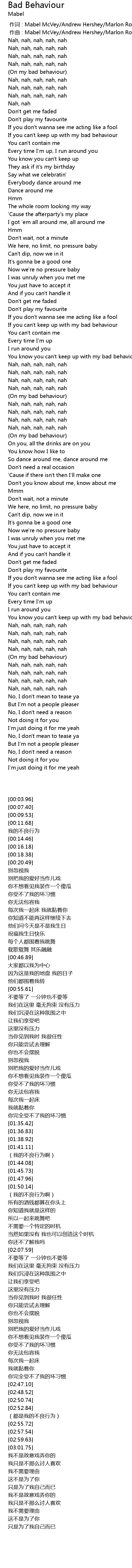 | [00:00.00] | 作词 : Mabel McVey/Andrew Hershey/Marlon Roudette |