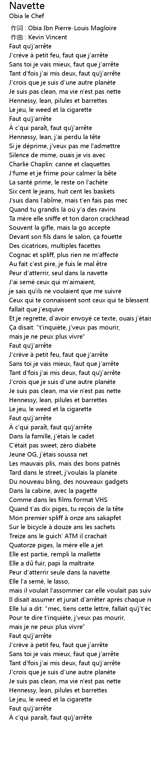 | [01:44.51] | À c' qui para t, faut qu' j' arr te |