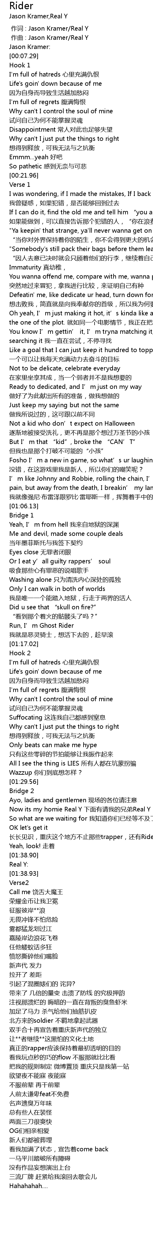 | [01:36.59] | OK let's get it 长长见识,重庆这个地方不止那些trapper,还有Rider |
